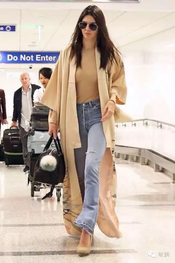Bella Hadid也穿过,选择了跟肯豆差不多的搭配。