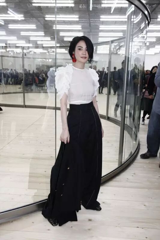 王菲以短发造型现身Céline大秀,又帅又美气场超足。黑白套装经典而率性,耳朵上的红色耳饰非常吸睛,天后美美哒!