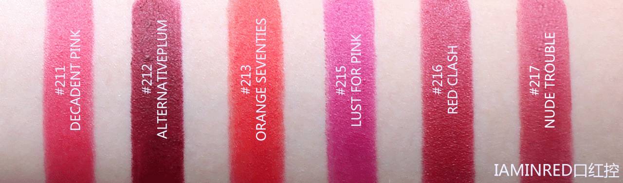正红色系是我永远不能拒绝的颜色,所以超爱这一支!红色中的那一丢棕色调让#216还蛮有秋冬氛围的。估计到了秋天它会被我时常宠幸~