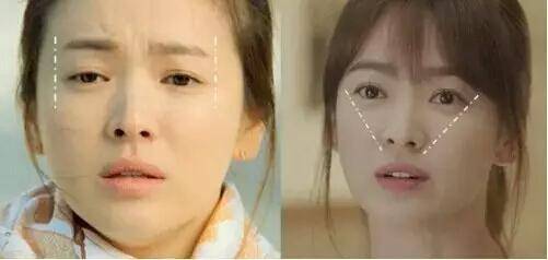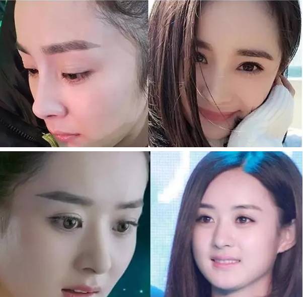 像大幂幂和赵丽颖以前过渡强调的一字眉就很突兀了,没有右边的野生眉来的自然
