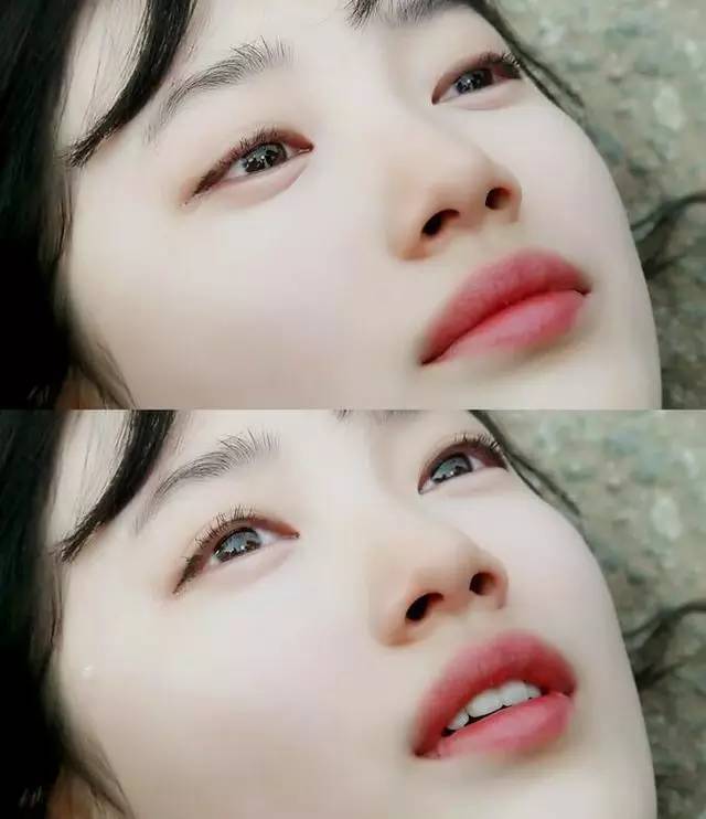 千万要注意的是,眉头一定要淡!淡!淡!如果重了的画,就露出端倪了。你看右边徐贤的眉头比眉尾还重,看起来就没有左边的允儿自然了~