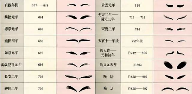 (↑不是十眉图,just唐代各时期女子眉形展示图)