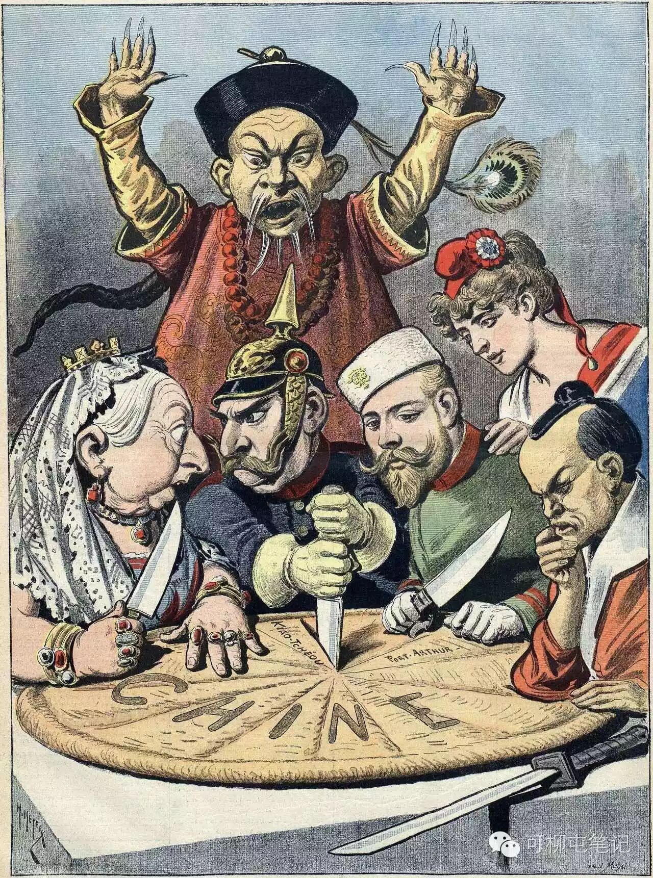 晚清:正在分的饼子上写的字是中国,后面就是我们的可怜的祖先
