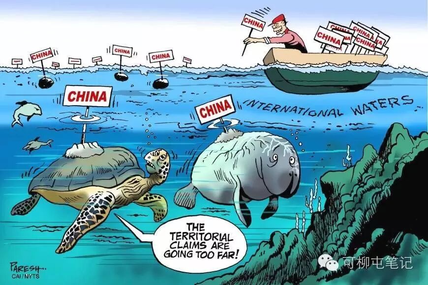 只要插上的都是中国的,我们准备了许多的小红旗,船下面写着:国际水域,乌龟说:“这主权声索的也太离谱了”