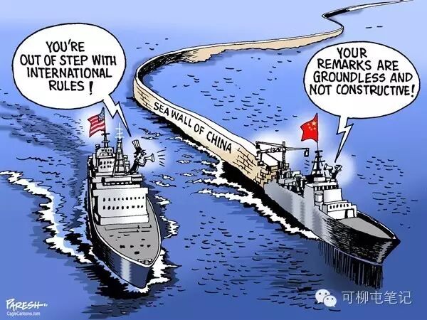 美国喊:你违反了国际法 中国:你的说法是没有根据的,没有建设性的。好熟悉不是?后面墙上写的是中国的海上长城