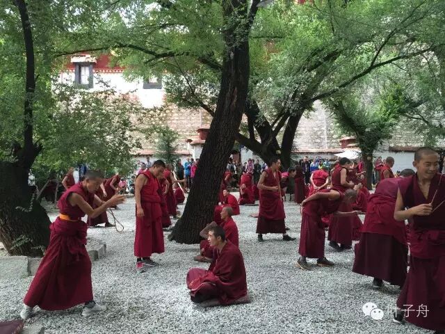 中午,终于睡舒服了的我独自去了小有名气的雪域餐厅。翻开微信时,小鱼儿她们已经开始晒逛布宫的照片了。这家伙还真去了!我索性叫大家一起来吃饭。小鱼儿三人应邀而来,谁知她们刚来,小鱼儿便又浑身不舒服,打了个照呼便勿勿离去。正觉着独食无趣,等风来和无聪赶来了。雪域餐厅的酸奶蛋还算不错,糌粑也不负众望,倒是耗牛肉毫无亮点。饭后,我们一行人来到无聪哥们儿的摄影楼。梦想穿着藏服的等风来如愿以尝,美美的和我赶去色拉寺看辩经。