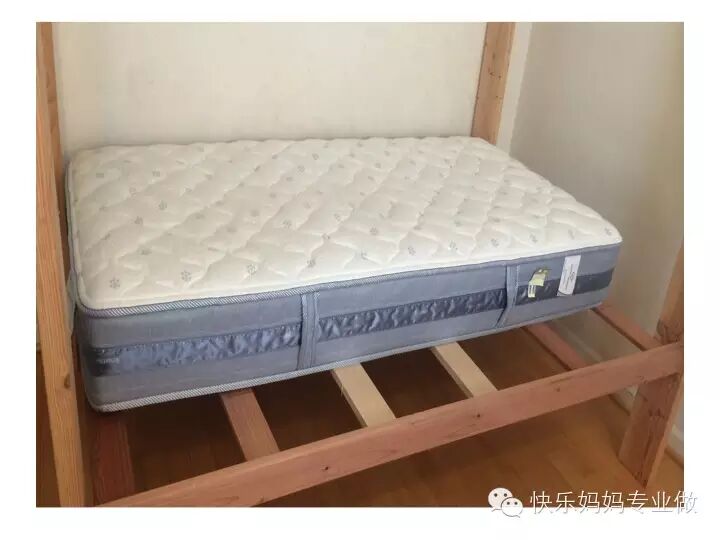“这种木条间隔大的,上面要放个boxspring,直接放床垫回阵子会变形。要么再加几根木条,支撑多一些就可以直接放床垫了。”