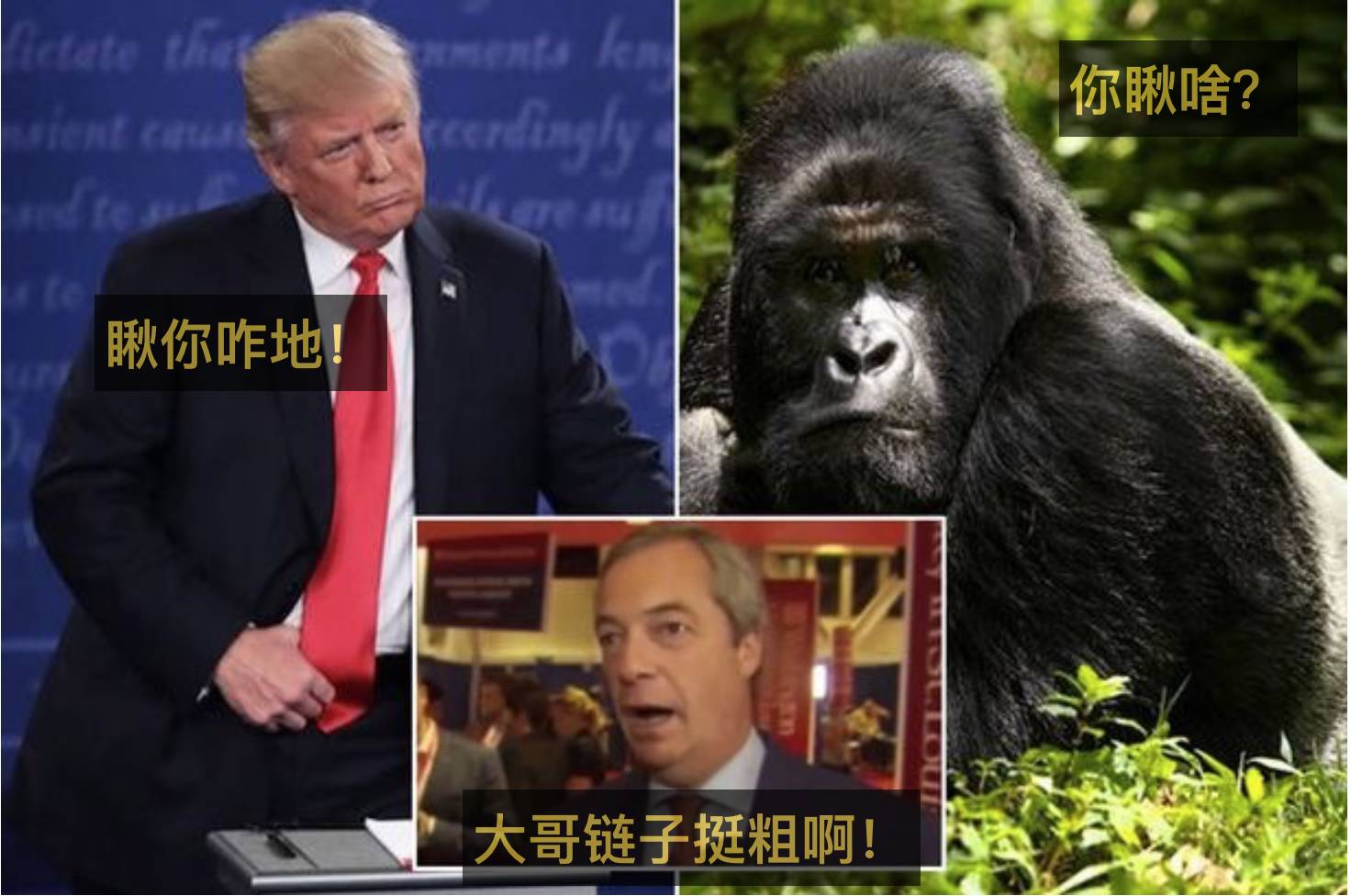法拉奇望着川普伟岸的身影,情不自禁地和记者说到:“川普大哥就像银背大猩猩一样雄健伟岸啊!在自己的台子旁边走来走去,保护自己的领地(a big silverback gorilla prowling the stage)!”说着还比划了起来。
