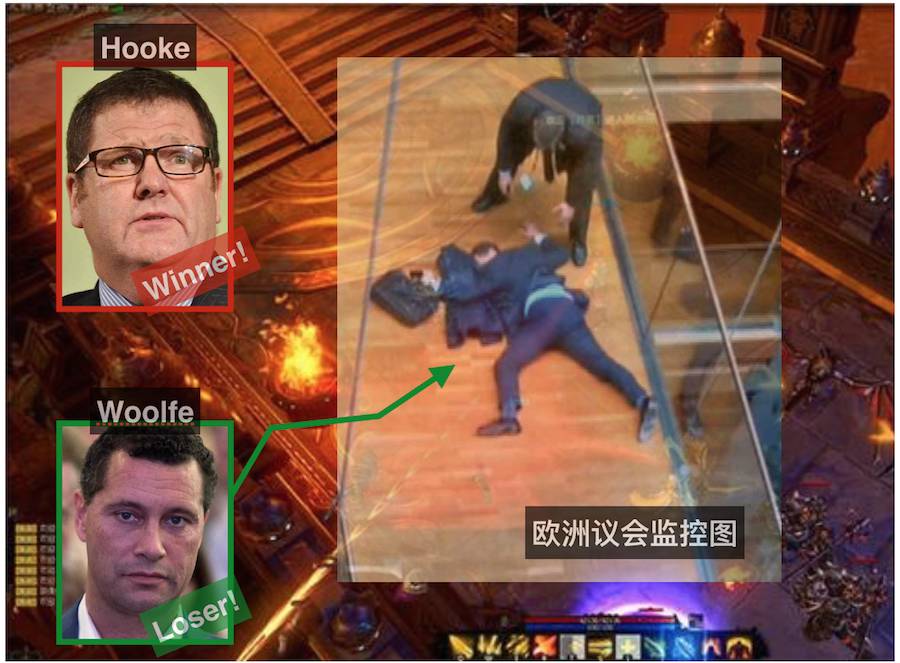 最近,两个争夺UKIP党魁地位的人,一个是律师Steven Wolfe, 一个是17岁从军的军体拳好手Mike Hooke,在斯特拉斯堡议会大厦的小房间内发生了“冲突”,结果Woolfe倒在了走廊上。据议员们透露,Woolfe 挑衅了几个人,最后被其中一个打了……