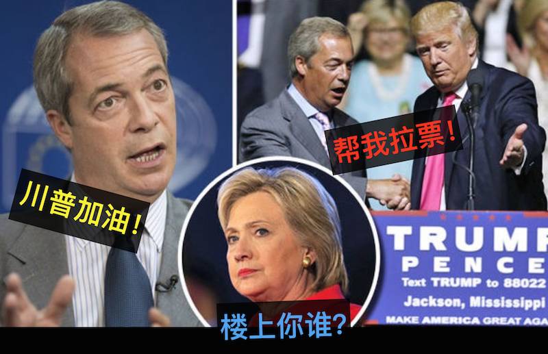 一个月后,他竟然在美国密西西比州的川普拉票大会上,万众瞩目地登场了!他告诉大家,看到脱欧给英国带来的“成功”,希望美国也能有这样的“机会”。而且“即使希拉里给我钱,我也不会给她投票的!”