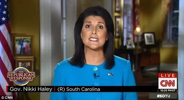 作为一名印度移民的女儿,44岁的Nikki Haley是南卡罗莱纳州(以下简称南卡)历史上第一位女性州长,也是最年轻的的一位州长。 从2011年当上州长,连任了两届,在南卡评价不错。她的父母都来自于印度旁遮普邦,后在美国教书,两人都是锡克族(也包着大头巾,不是穆斯林????),但Nikki本人是天主教徒。作为有移民背景、女性、政绩上没什么大的污点,颜值还不错的形象,有点儿像前几年国内干部中流行的“无知少女”类——无党派、知识分子、少数民族、女。她可以说是这几年共和党州政府级别领导人的一股清流+政坛新秀,尤其在南卡这种“深红”地带,非常不容易。