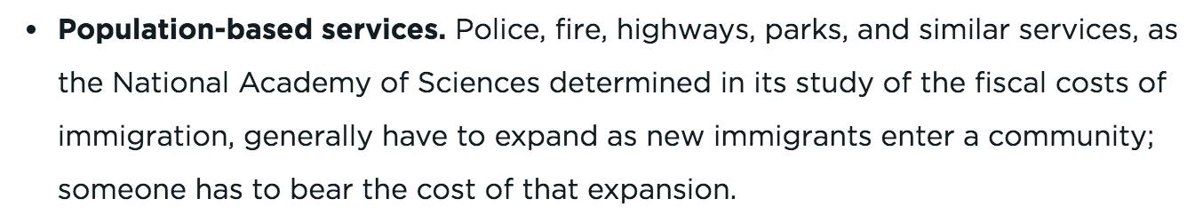 然而这项研究并没有把非法移民和合法移民分开研究,没有按保障金额和种类来算(小孩在学校吃了补贴午餐也算),更没有按地区来研究。根本没有直接说明“非法移民吃光了福利”,顶多能证实:移民确实拿了福利。但是从税收贡献来说,移民平均交得税要远远高于土生土长的美国人[5]。