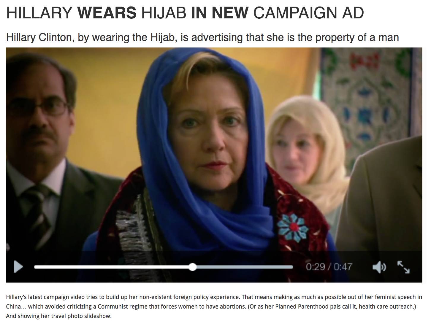 这难道不是国务卿希拉里.克林顿?头巾又在哪儿呢?