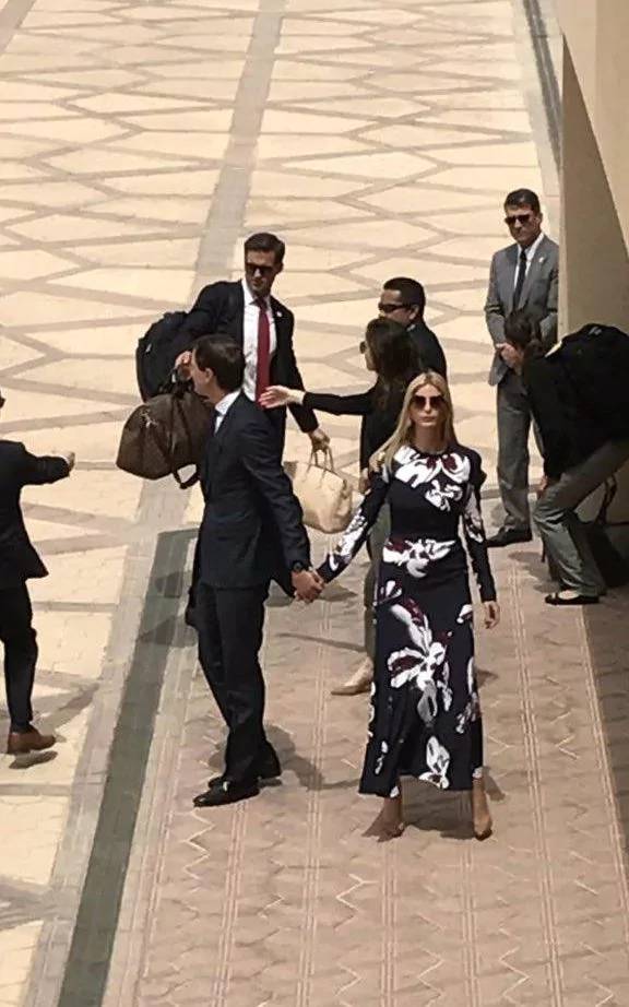 其实还不止是梅兰妮,一起去的川普女儿穿成了这样:又清真又时尚,真要引领伊斯兰清真女装潮流了?底色也是一身黑,沙特人认为该遮住的地方也基本都遮住了。