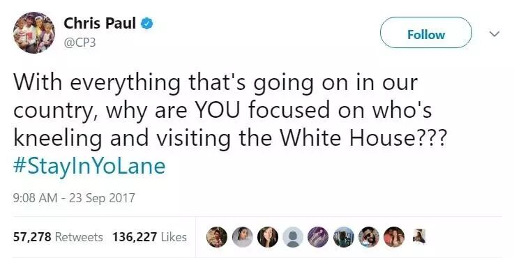NBA球星保罗也发推特炮轰:“看看我们国家正在经历的一切,为什么这个人还能如此执着于谁来访问白宫这样的问题?”(5万多转发、13万多的点赞……)