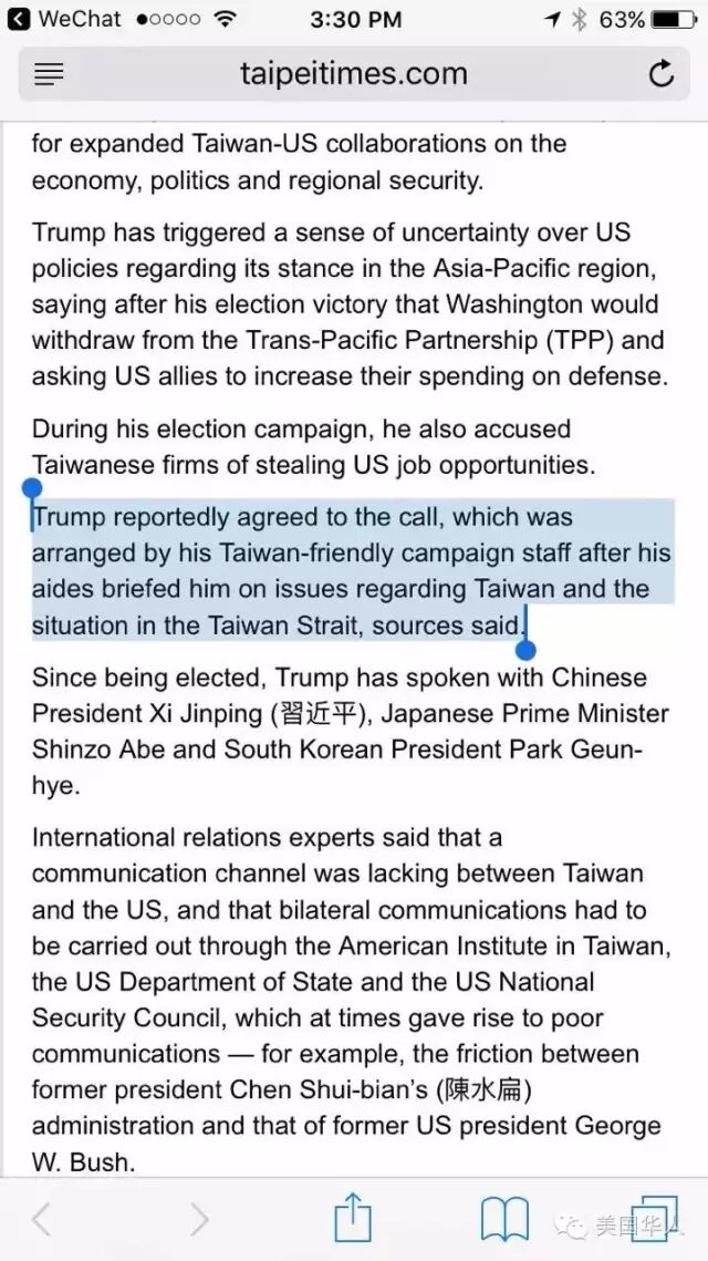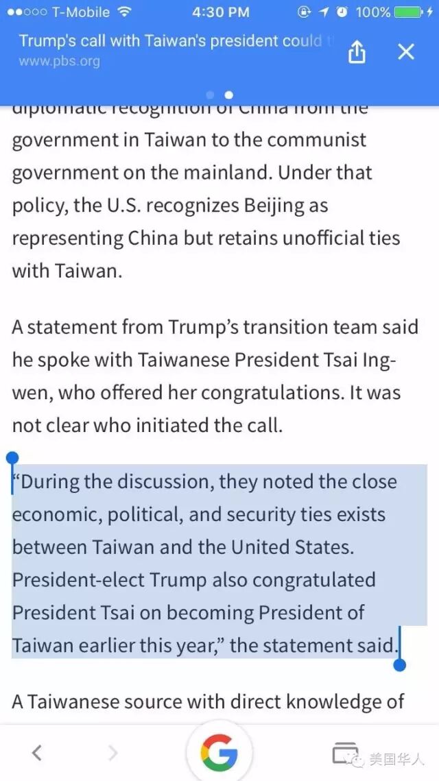 可能有人会说川普还没有就职,有什么关系。但是就算没有就职的总统,台美自1979年断交以来也没有和台湾领导人通过电话。
