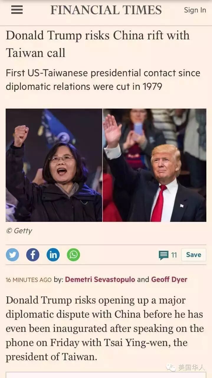 台湾是关系到中国主权和领土完整的核心利益,也是美中关系最敏感的问题,这一40年未有之外交事故,无论川普与团队是出于无知还是傲慢,都释放出新政府对华将采取强硬态度的强烈信号。