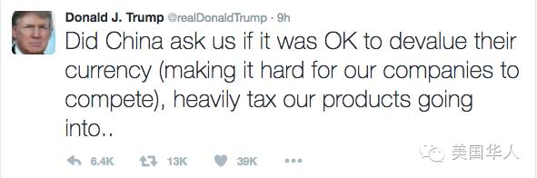 作者截稿前(12月4日),川普突发两条攻击中国的推文。他的推文意思是:“中国让货币贬值使得我们的公司难以和他们竞争,并且对我们进入他们国家的货物征以高税(而美国并没对这些货物征税),或在南中国海建设巨大的军事设施,中国有没有问过我们是不是OK吗?显然没有!”。