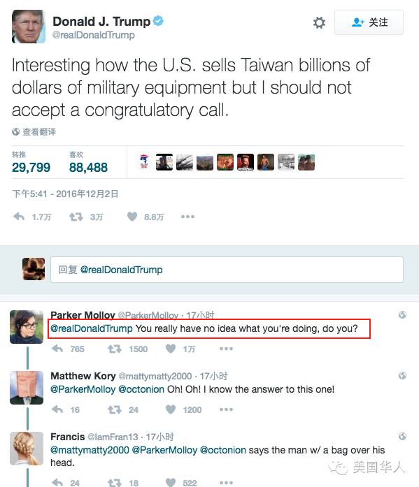 这是自1979年台美断交以来美国总统或当选总统和台湾领导人之间的首次电话。这直接违反中美三个联合公报。大家都知道:台湾是关系到中国主权和领土完整的核心利益,也是美中关系最敏感的问题。这个商人怎么也没先谈判一下就直奔主题呢?