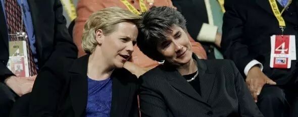 切尼的女儿(左)与同性伴侣(右)2012年正式结婚,两人相恋20年,此前共同育有两个孩子。切尼夫妇发布公开声明并送上祝福。同性恋婚姻合法化,目前只在全美9个州(地区)获得承认