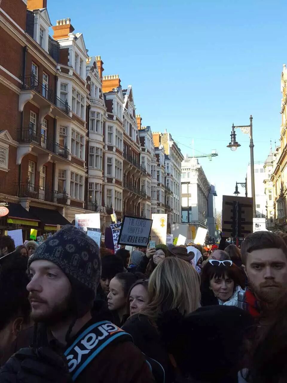 “为我女儿发声参与了历史而自豪。她说伦敦游行的规模大概是华盛顿DC的一半的样子。” --H