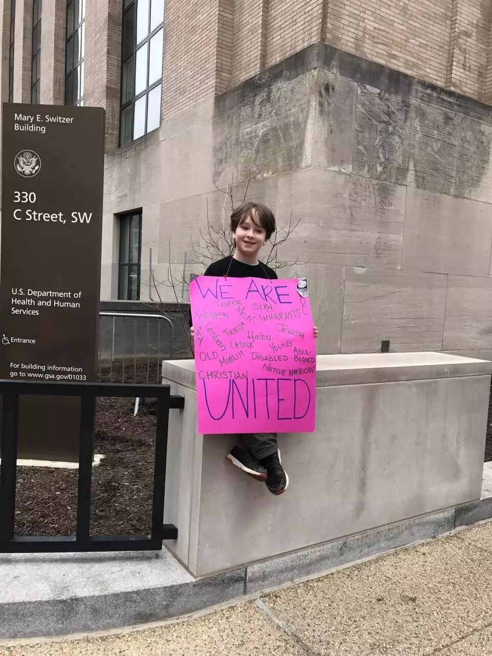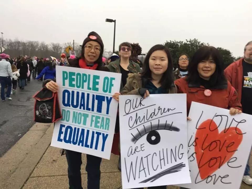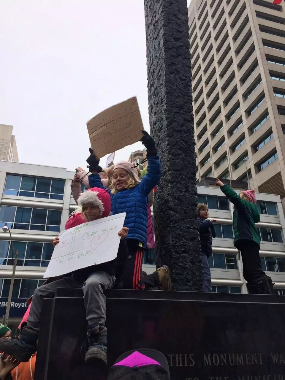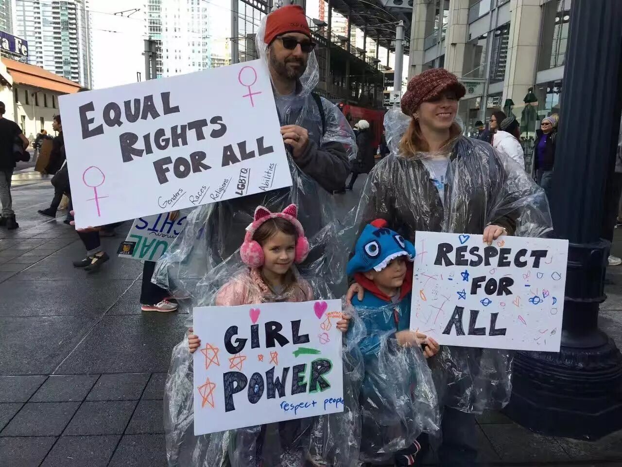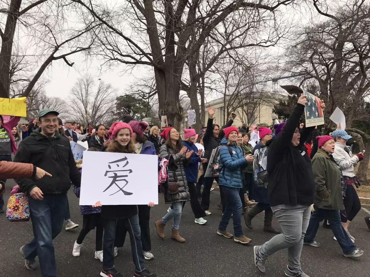 我们一直强调对男性的教育,让他们一方面对性别成见和强奸文化的社会现实有足够的认识,一方面对自己的男权思维和性别优势有足够的觉知,这样才有行动的可能。我们在游行队伍中看到了丈夫、父亲和朋友们,他们有的甚至也带着粉红色的猫耳朵帽子。也看到了一些孩子,他们在这里接受熏陶教育,是明天的力量。实际上,千禧年一代对于此次的选举大为失望,但是时间是在他们一边,我们的新世界就在眼前。