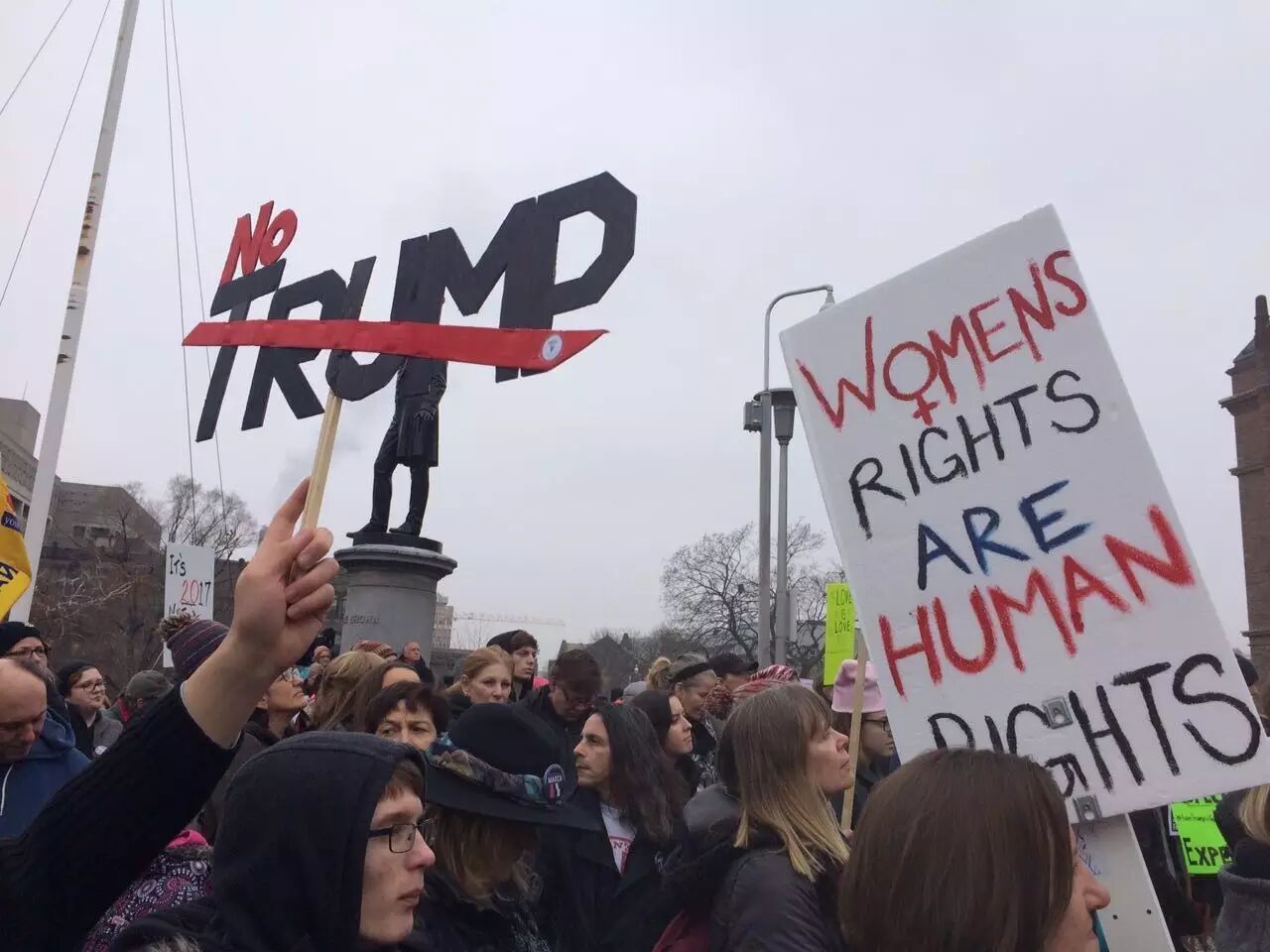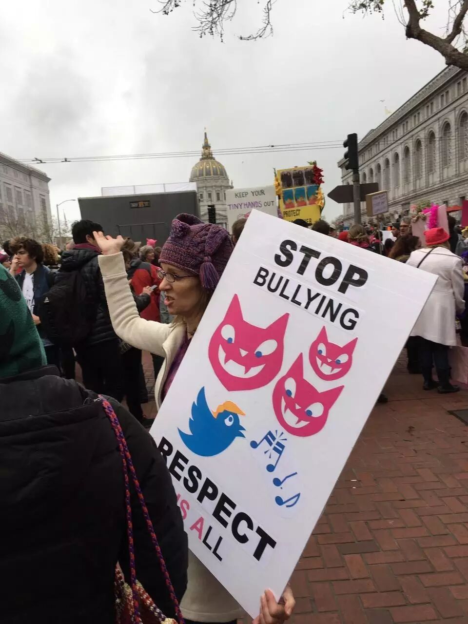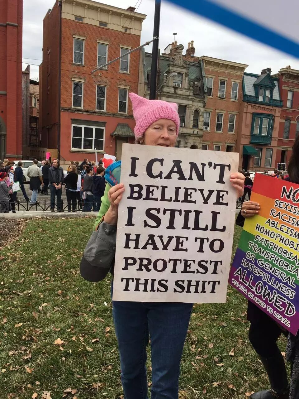 这场全球盛会,毕竟是女性发起的,女性的权益是重要的核心诉求。女性过去百多年的持续抗争,才从连选举权和财产权都没有的附庸状态,为自己赢得了独立和尽可能的平等。不要忘记,游行的直接导火索是川普赤裸裸的性侵犯语言,以及随后主流观念的辩解:所谓“更衣室谈话”,就是一种对侵犯者的包庇纵容,对被侵犯者的二次伤害。这个社会充满着强奸思维,充满着对于女性的物化和性化,进步是一点点积累起来的,倒车却是飞速,怎么不让人心急如焚?正如有的抗议者们所说,“不敢相信都什么时候了,我们还得抗议这些破事!”