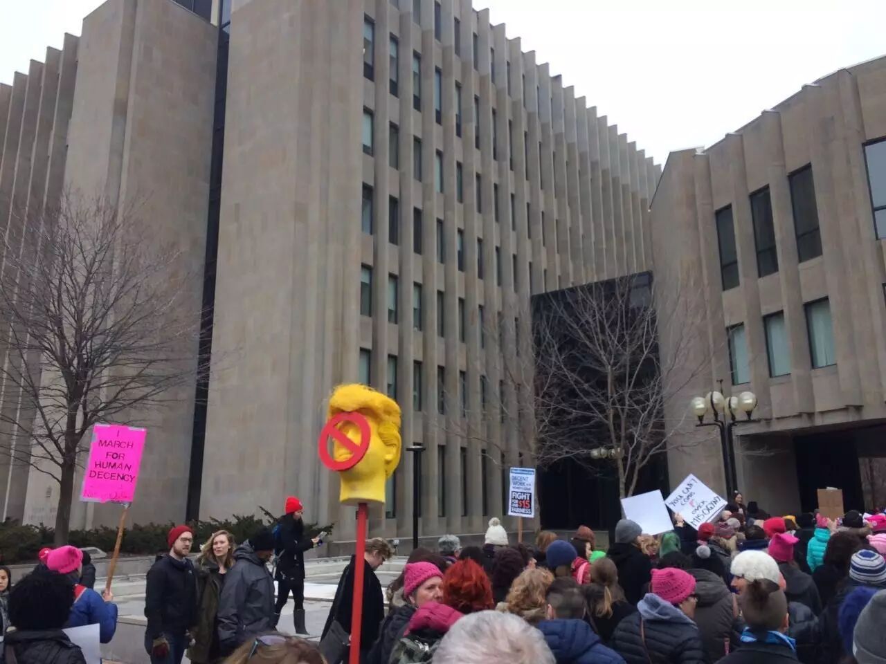 我们到底还是要感谢一下川普,他成为最能促成团结的人——因为他,三百多万人万众一心地走到了一起,与时差只有一天的就职大典相比截然两个世界。是的,他代表旧世界、妄图恢复旧世界,而世界已经是新的了,你可以拨回时钟,但是你拨不回时间。为了参加这场一呼百应、千应、万应的盛会,有的人专门乘飞机或租大巴,有的人就近搭地铁,有男有女有老有少,凭着心底一个共同的声音,就像她们头上的粉色小帽一样,是大家互相识别的标志。