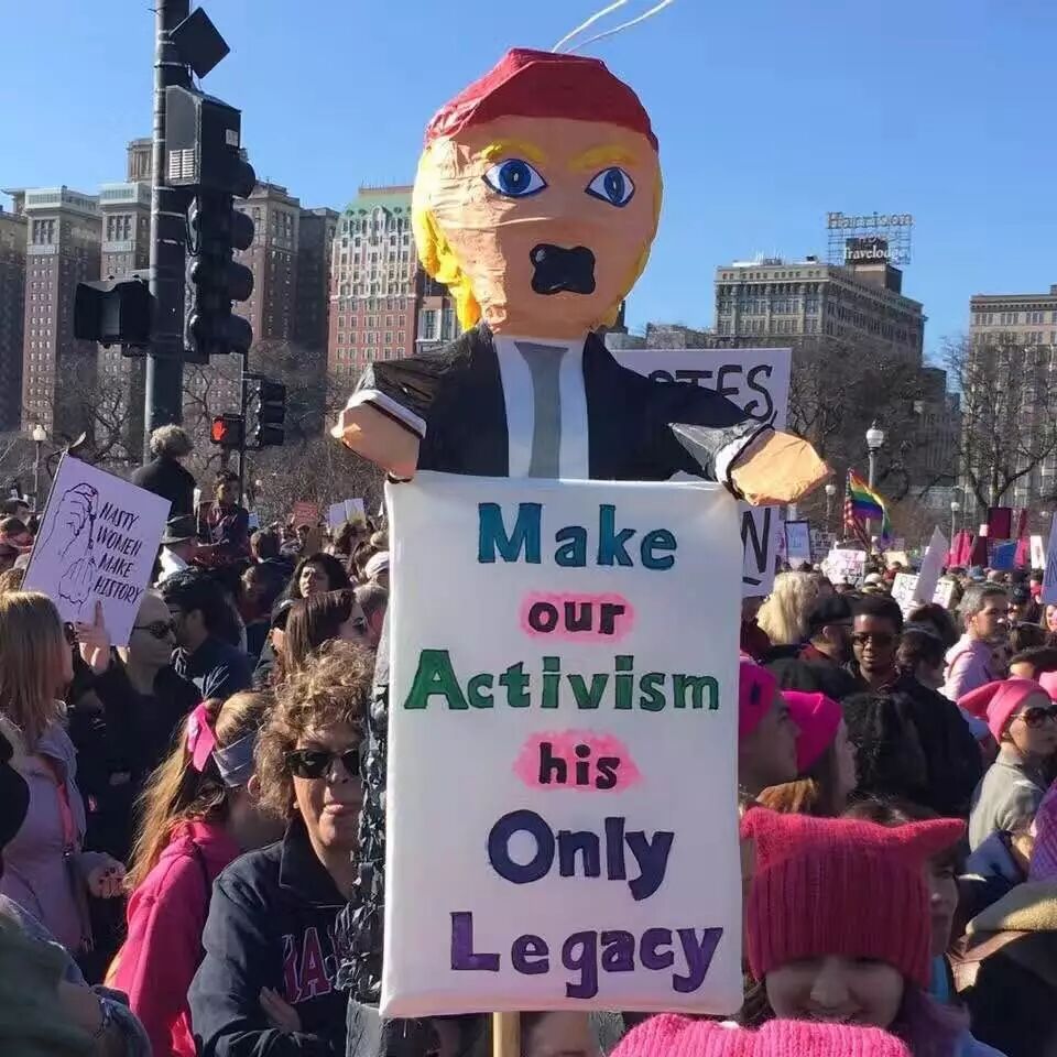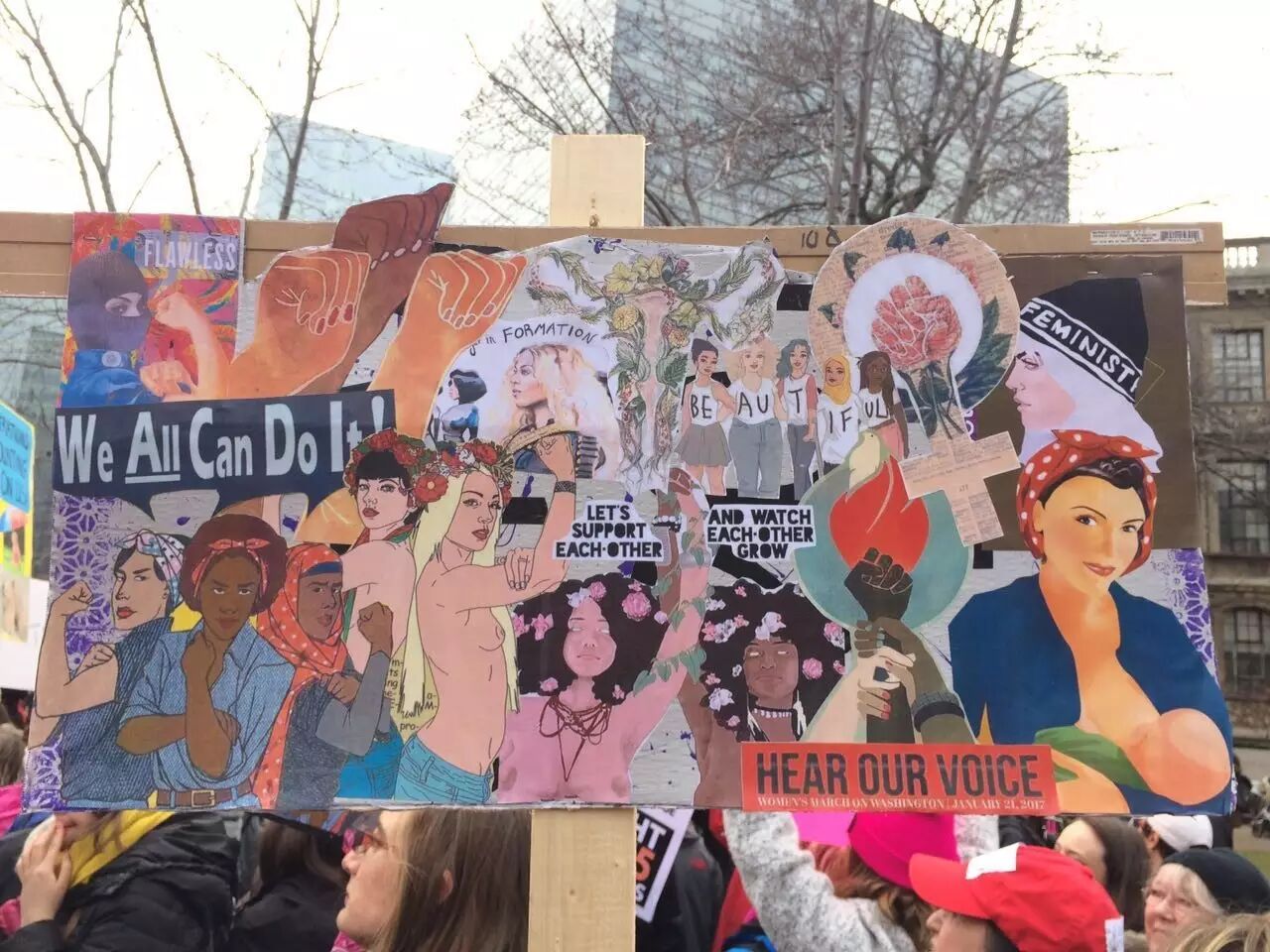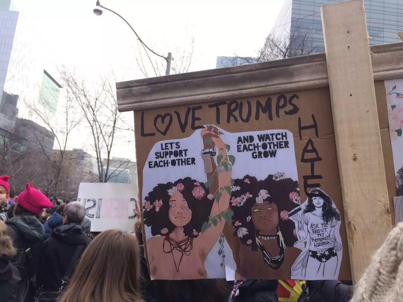 然而川普虽有政治和法律机制的笼子在掣肘,对川普主义的斗争则需要每个人的点点滴滴的行动。就像标语牌铺就的漫漫长路,这条路的每一步,都是某一个人的倾心投入。据统计,这是有史以来最庞大的聚会;有人说,这也是有史以来最美丽的聚会。有爱有理想的人,是美丽的。看世界,新的川普正在各地蠢蠢欲动,民粹主义、保守主义、反智主义的情势仍然严峻,选票的斗争还在继续进行。让我们用原住民的谚语来瞻望未来吧:“不要告诉女人去做什么,要请女人告诉你应该做什么。”或者像标语牌说的——