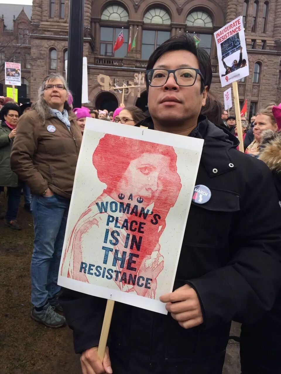 这些破事还包括原住民女性被侵犯和杀害,而长期得不到重视和伸张;包括多达三分之一的女性都遭受过家庭暴力;包括美国的女性健康服务机构Planned Parenthood被当局打压和克扣,导致无数女性难以获得体检、避孕和性病防范等帮助;包括从小从加勒比海被带到美国做女佣、到老了都没有身份却没有福利甚至面临被遣返;包括即便是好莱坞一线女星的地位,报酬仍然比不上同等级男演员的一半;包括女性因为自己的穿着或表情而被强迫意愿,并在被侵犯后单方面承受污名……凡此种种,都不是女权主义的迷思,而是我们所在的事实。在多伦多的游行开始之前,全场一起静默一分钟,为了人们迄今为止仍然没有看到的男女平等的理想而静默。所幸,有觉识的女性和男性越来越多,特别是男性。诺贝尔奖获得者马拉拉曾说,一个社会的进步,不可能通过排除一半人(女性)来实现;同理,///一个女权主义潮流的成功,也必须有另一半人(男性)的共同参与///。