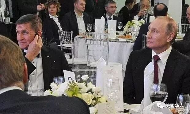 弗林参加俄国新闻界聚会,与普京同桌。