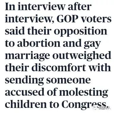 当然,这些各方声音都不如阿拉巴马的选民民意力量大。根据PBS的采访,当地的摩尔选民表示,支持堕胎权和同性合法婚姻的民主党,太左。他们认为摩尔的性丑闻属于"故事(stories)",他们选择相信摩尔本人。2016年大选,尽管被16位妇女指控性侵,川普仍然在阿拉巴马领先28%,多少说明阿州选民在这两方理念上权衡后的选择立场(点击链接)。