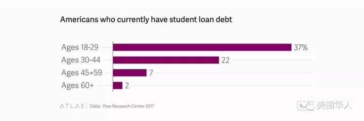 美国人背负学生贷款状况(2017年数据):