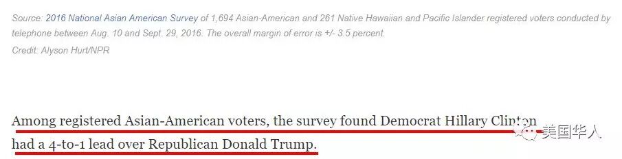 2016年,在注册的亚裔选民中,支持希拉里的是支持川普的4倍。新闻来自NPR