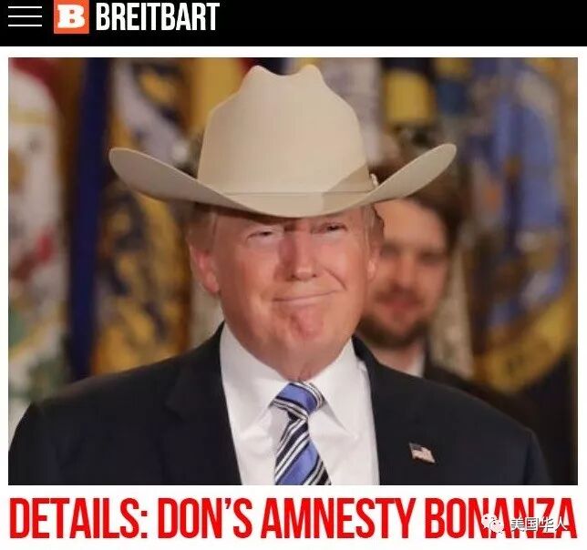 特朗普总统的长期盟友、右翼网站《Breitbart》马上在头版头条给特朗普总统取了一个外号:“Don’s Amnesty”(老唐的大赦)。