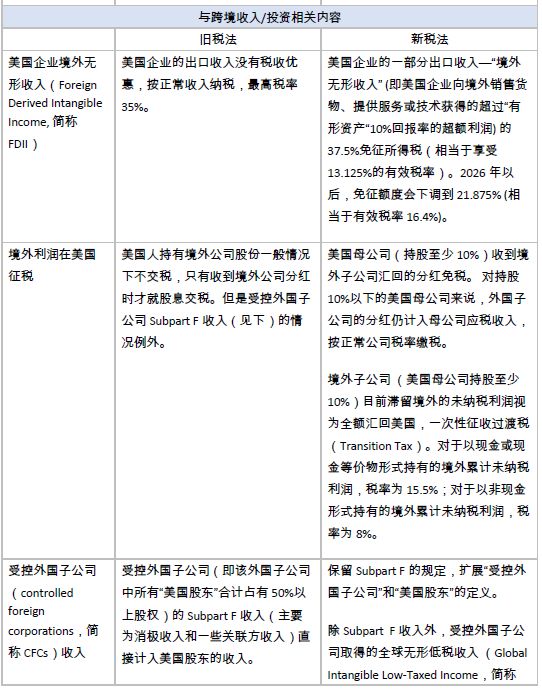 此次美国税改涉及美国联邦税制下个人所得税和企业所得税的诸多方面。由于篇幅有限,本文只归纳总结与在美投资及跨境交易相关的一部分税改内容。同时,本文的后半部分也会结合中美跨境交易的常见模式,探讨税改之后对跨境投资架构会产生的影响。