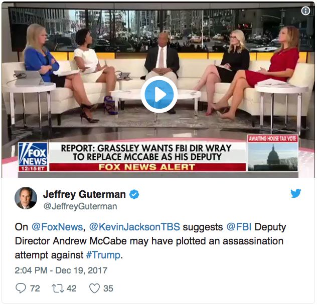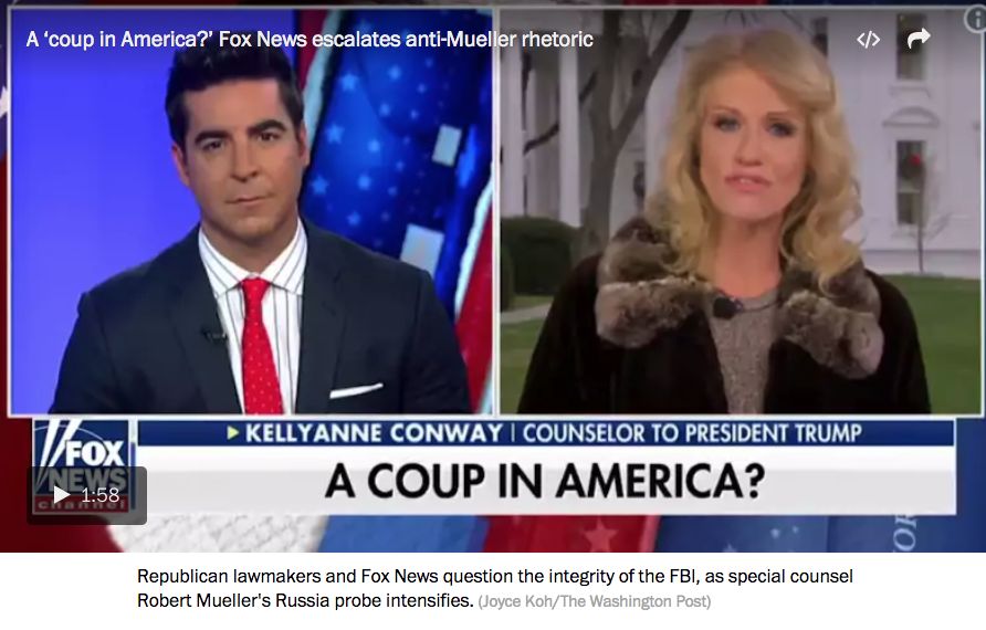 如果一个人只收看一个符合胃口的新闻频道,他很可能就是“另类事实”最好的传播对象。12月中,这个唯一被川普总统赞许的福克斯电视台暗示,FBI可能在计划谋杀川普总统,穆勒“通俄门”的调查是在搞政变。进行这种不负责任的报道,竟然称自己为新闻频道!