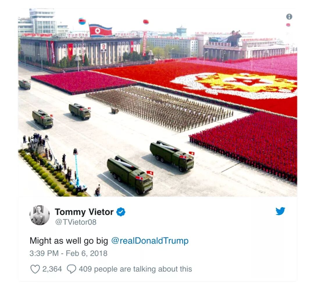 胡哥认为,川普总统倒不一定想要把阅兵和战争联系起来。也许他只是朴素地认为,别人有的我们也要有,才能体现咱们这泱泱大国地大物博的风采。只是总统先生,这2月8号已经到了,联邦政府能不能继续开门还难说呢,您整这么大的政(mian)绩(zi ) 工程真的合适么?