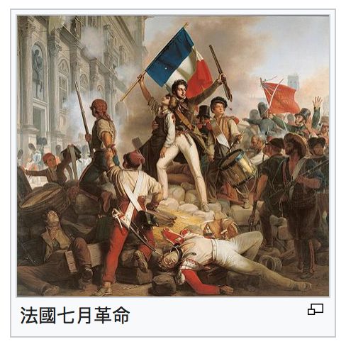 法國七月革命,是1830年歐洲的革命浪潮的序曲。Jean Victor Schnetz的油画,描述1830年法國七月革命巷战的场景。该画作后来成为为自由而战的象征。(图像来自维基百科。)