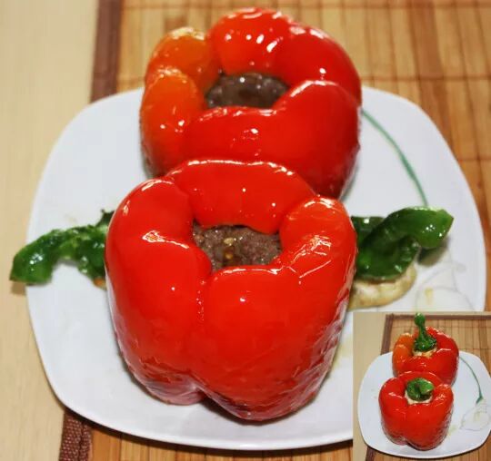 小煮锅盛满足够淹没红辣椒最高处的油量,将塞满肉的红椒投入,外层肉变色后,根据口味,炸30秒-2分钟后起锅。将娇艳欲滴的辣椒塞肉摆盘,十里飘香啦。