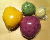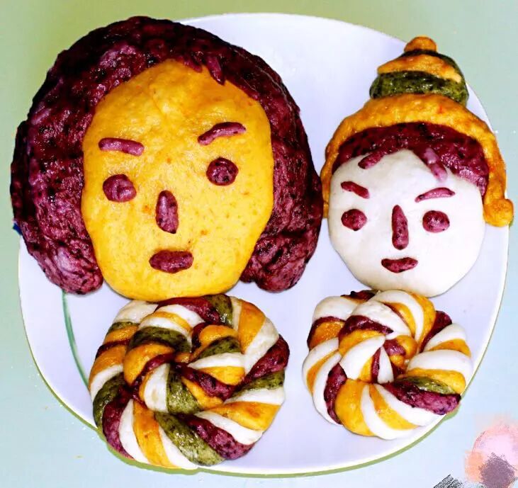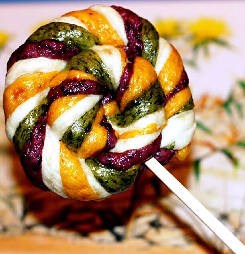 受棒棒糖馒头的启发,开始做五颜六色的面了。