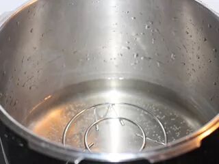 蒸菠萝饭:锅里加水,放蒸器,烧到水沸,将盛有米饭的菠萝放入,中火保持水沸腾,蒸20分钟(图12,13)。