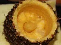 2. 菠萝肉选择靠近中心的果肉,水分少,质地紧密,适合做炒饭;