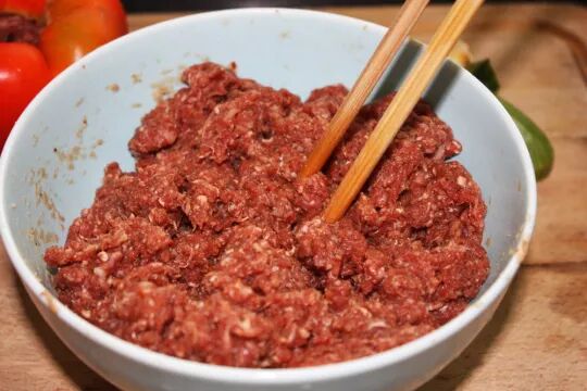童年吃的辣椒塞肉,这是带着妈妈的记忆的菜。肉最好猪肉,撒了五香粉、蒜粉、胡椒粉,拌了生抽、老抽、醋、白酒,数味搅合一体。