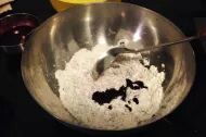 做胡萝卜面,绿叶蔬菜面,蓝莓面,和普通白面。600g面粉加6g酵母和6g泡打粉,混合均匀备用。先说蓝莓面,将200g蓝莓洗净。说个洗蓝莓和草莓之类水果的小窍门,可以加些面粉,泡几分钟,这样面粉会吸附脏东西。用blender打碎成汁,精细些做法的话,最好把蓝莓汁用细密的网或者纱布过滤一下,把皮渣之类的去掉,这样用于和面不会降低太多面的韧性。其他蔬菜汁、水果汁最好也同样处理。当时没有这么做,后来和出来的面带着不少细小皮渣,做馒头的时候发现搓长条面容易断。之后,将加了酵母和泡打粉的面和蓝莓汁用7:3的比例混合(蓝莓汁很湿不用再加水),再按每100g面粉加4大勺糖(大概20-30g)的比例加糖,和面10分钟。以面达到三光(面光,盆光,手光)为标准。