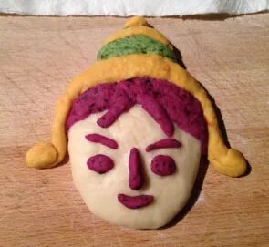 做了5个大小不一的棒棒糖馒头。其实一开始做五颜六色面目的只是为了做多色棒棒糖馒头,但剩下的面太多了,于是又做了雪孩儿馒头。