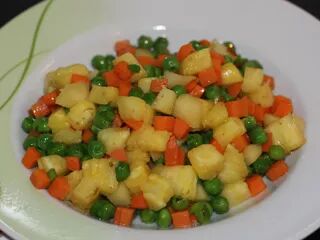 1. 因为最后会蒸,所以前面炒蔬菜、菠萝和米饭时,做到6、7分熟即可;