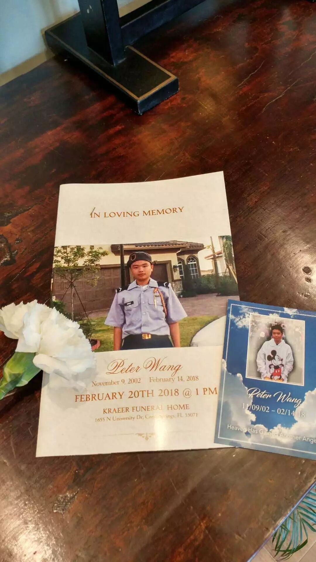 佛罗里达校园枪击案过去六天了。王孟杰(Peter Wang),15岁的华裔小英雄今天下葬,长眠于地下,而父母、家人和朋友心中的伤痕,却难以愈合。
