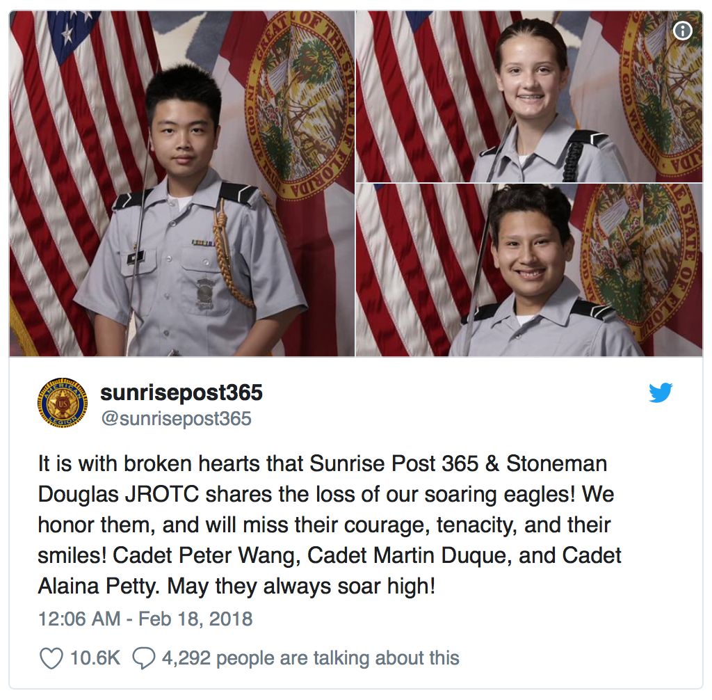 陆军部将向三名在上周佛罗里达州高中枪击案中遇难的陆军后备役军官训练营成员追授陆军英雄主义勋章(Heroism medals),这是后备军官训练团学员的最高荣誉。