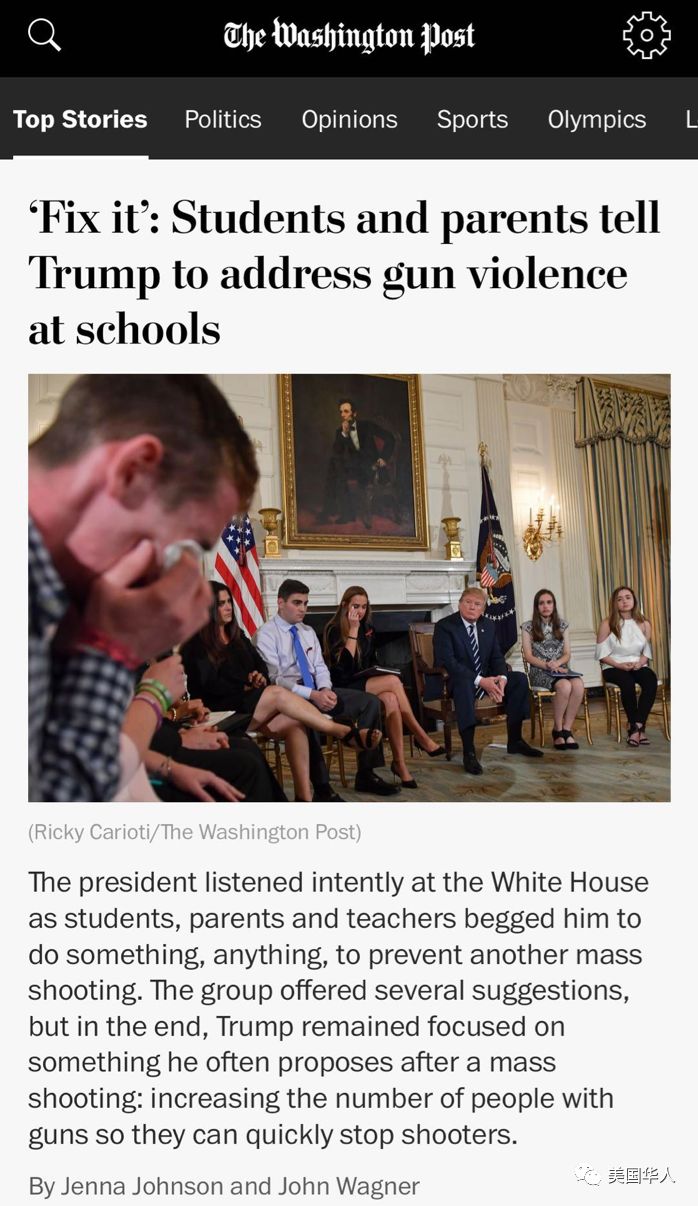 也是昨天,川普总统举行了一个“倾听会”,倾听一周前枪击案幸存者与受害人家属的声音。除了倾听,总统也试探提出了他的解决方案。也许读者猜对了,他的方案是以其人之道还治其人之身:你有枪,我也要有!防止校园枪击最好的办法就是把老师们武装起来,让潜在袭击者不敢轻举妄动。总统此论与NRA加强校园防御的腔调如出一辙,不但没有任何新鲜内容,而且有转移大众视线绕开控枪可行性讨论之嫌。真正新鲜的是总统手中拿的一张提示卡片,上面的内容事后被新闻记者的照片曝光了。不是说一张照片胜过千言万语吗?看图吧,图姐已经无语,难道我们的总统连同情都需要人教吗?